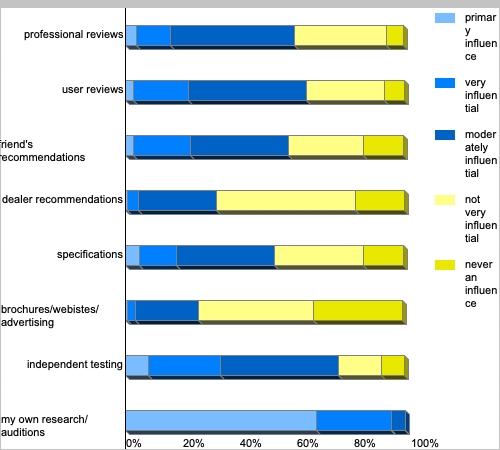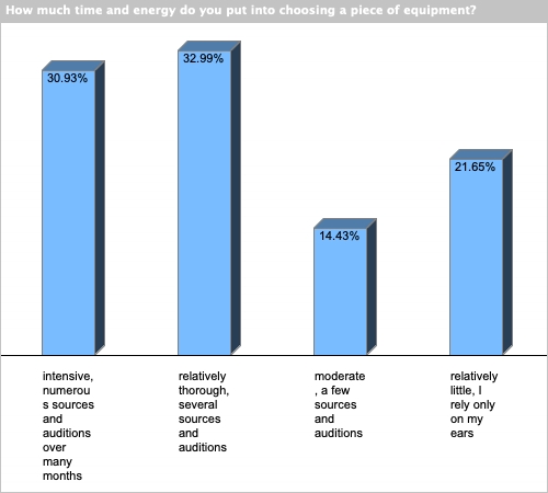 | auditioning in my own home, with my own components | 64.95% | 19.59% | 9.28% | 5.15% | 1.03% |