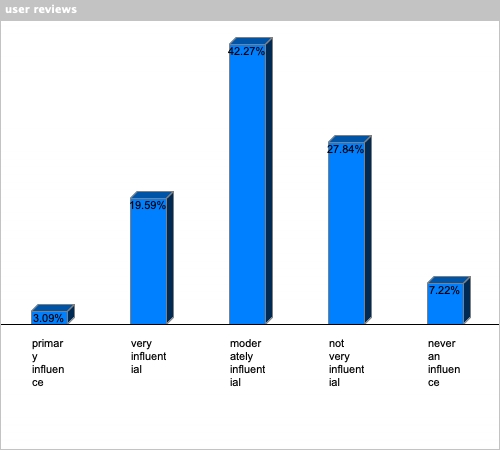 | user reviews | 3.09% | 19.59% | 42.27% | 27.84% | 7.22% |