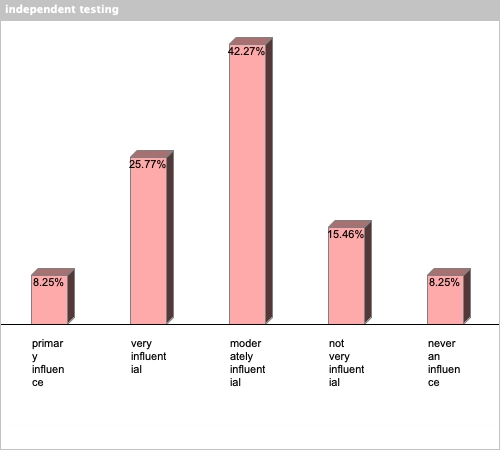 | independent testing | 8.25% | 25.77% | 42.27% | 15.46% | 8.25% |