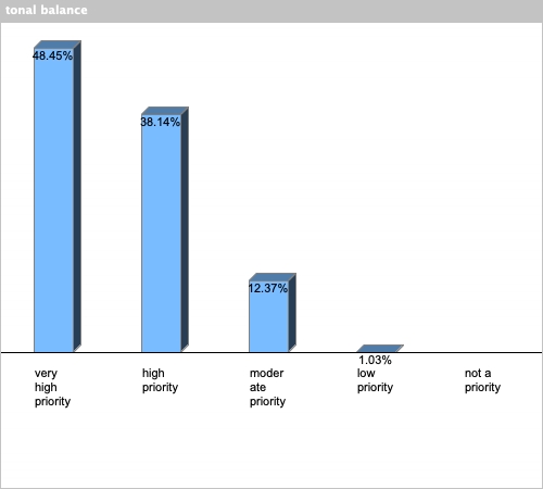 | tonal balance | 48.45% | 38.14% | 12.37% | 1.03% | 0% |