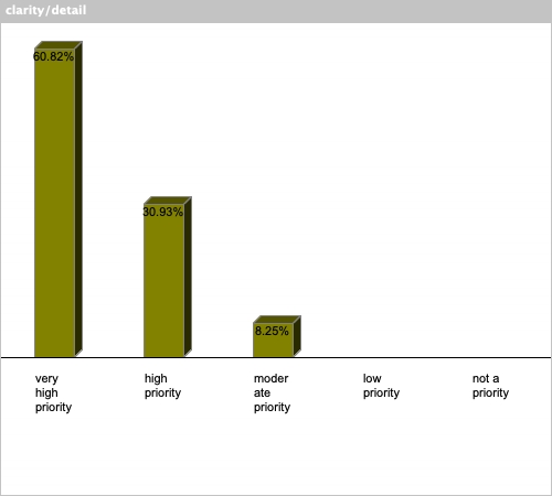 | clarity/detail | 60.82% | 30.93% | 8.25% | 0% | 0% |