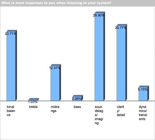 | soundstage/imaging | 49.48% | 31.96% | 14.43% | 3.09% | 1.03% |
