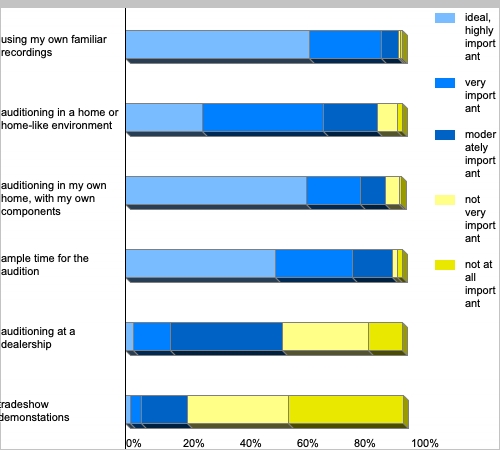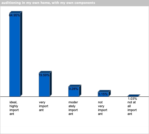 | auditioning in my own home, with my own components | 64.95% | 19.59% | 9.28% | 5.15% | 1.03% |