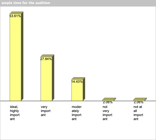| ample time for the audition | 53.61% | 27.84% | 14.43% | 2.06% | 2.06% |
